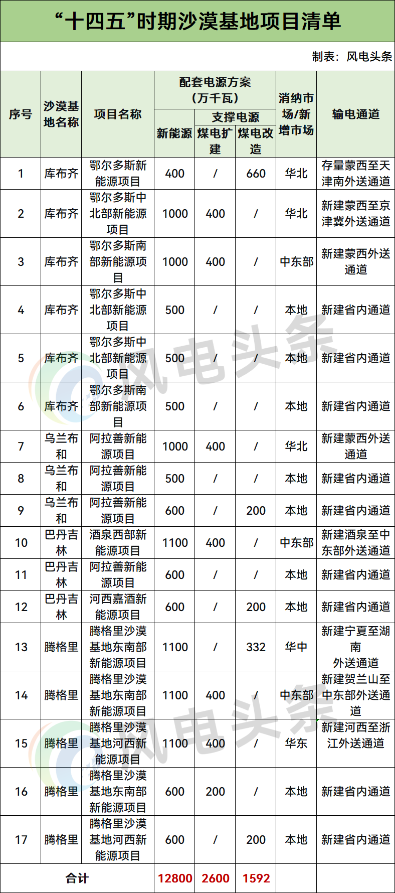 近期,国度发改委成长战略及计划司司长陈雷于解读“十五五”计划时提出,“十五五”期间,将经由过程实行雅下水电、“沙戈荒”新能源基地、电力外送通道等一批庞大工程项目,鞭策西电东送能力到达4.2亿千瓦以上,确保2030年非化石能源占能源消费总量比重晋升至25%。这不仅是一个雄伟的能源方针,更是将来十年中国能源邦畿深刻厘革的步履大纲。 PART 01 政策演进:“沙戈荒”的来时路 时间拨回到2021年10月。于昆明进行的结合国《生物多样性条约》第十五次缔约方年夜会带领人峰会上,我国初次提出“于戈壁、沙漠、荒原地域加速计划设置装备摆设年夜型风电光伏基地项目”。随后发布的《2030年前碳达峰步履方案》将其正式确立为国度步履,这些项目也是以被行业简称为“沙戈荒”风景年夜基地。今后,跟着国度能源局将设置装备摆设规模拓展至采煤沉陷区、沿海滩涂等更多区域,这种由国度批复的年夜型可再生能源项目就被同一定名为“风景年夜基地”。 今后,政策的接力棒被稳稳通报。 2021年12月,国度发改委、国度能源局发布《关在印发第一批以戈壁、沙漠、荒原地域为重点的年夜型风电光伏基地设置装备摆设项目清单的通知》。此中“沙戈荒”地域的项目总计20个,总范围42.85GW!触及内蒙古、青海、甘肃、陕西、宁夏、新疆等省分,标记着“沙戈荒”项目正式进入落地实行阶段。 2022年2月,国度发改委等部分印发《以戈壁、沙漠、荒原地域为重点的年夜型风电光伏基地计划结构方案》,吹响了范围化结构的军号。方案明确,到2030年计划设置装备摆设风景基地总装机范围约4.55亿千瓦。 从空间结构看,此中库布齐、乌兰布及、腾格里、巴丹吉林戈壁基地计划装机2.84 亿千瓦,采煤沉陷区计划装机0.37 亿千瓦,其他戈壁及沙漠地域计划装机1.34 亿千瓦。从时间摆设看,“十四五” 期间计划设置装备摆设风景基地总装机约2 亿千瓦,此中外送1.5 亿千瓦、当地消纳0.5 亿千瓦;“十五五” 期间计划设置装备摆设风景基地总装机约2.55 亿千瓦,此中外送1.65 亿千瓦、当地自用0.9 亿千瓦。 同时,第二批风景年夜基地项目清单发布,触及戈壁地域项目17 个,项目结构较为集中,新能源项目总范围128GW,单体项目范围均跨越1GW。 2024年中心经济事情集会专门部署加速"沙戈荒"新能源基地设置装备摆设,提出"鞭策"三北"工程标记性战争取患上主要结果,加速"沙戈荒"新能源基地设置装备摆设",将其纳入国度庞大战略攻坚使命。2025年2月27日,国度能源局发布《2025年能源事情引导定见》,明确指出,要踊跃推进第二批、第三批“沙戈荒”年夜型风电光伏基地,科学经营“十五五”“沙戈荒”新能源年夜基地结构方案。2025年3月,政策连续加码。“沙戈荒”初次被写入《当局事情陈诉》,陈诉明确提出要加速年夜型风景基地设置装备摆设。时间来到2026年,“沙戈荒”设置装备摆设迈入“十五五”开局要害期。 两会宣布的“十五五”计划109项庞大工程项目清单中,“沙戈荒”新能源基地设置装备摆设赫然于列;3月6日,十四届天下人年夜四次集会经济主题记者会上,国度发改委主任郑栅洁明确暗示,将连续推进雅下水电、“沙戈荒”新能源基地等投资万亿元以上的能源庞大工程,来保障国度的现代化设置装备摆设及人平易近群众的幸福糊口。处所层面一样踊跃相应。于处所各省2026年的当局事情陈诉中,新疆、青海、内蒙古、山西、黑龙江、辽宁、四川、西藏等8个省分均说起了“沙戈荒”年夜基地的设置装备摆设,将其作为当地能源转型及经济成长的焦点引擎。 此外,2026年年头,国度电网发布重磅投资计划,明确“十五五”时期固定资产投资估计达4万亿元,同比增幅达40%,创下我国电网投资格史新高。计划中提出,将进一步完美“西电东送、北电南供”能源运送收集,加速特高压直流外送通道设置装备摆设,鞭策跨区跨省输电能力较“十四五”末晋升30%以上,重点支撑国度“沙戈荒”新能源基地和西南年夜型水电清洁能源基地的开发与外送,这无疑为“沙戈荒”战略落地实行注入了一剂强劲“强心针”。 PART 02 瓶颈破局:“沙戈荒”的攻坚路 截至2026年,“沙戈荒”基地设置装备摆设已经热火朝天推进五年了,国务院总理李强于2026年当局事情陈诉中提到,第一批“沙戈荒”新能源基地项目基本建成投产,标记着“沙戈荒”设置装备摆设完成为了“从0到1”的冲破,第一阶段方针告竣。但跟着设置装备摆设范围连续扩展,从“建起来”向“用起来、送出去”转型的历程中,一系列实际磨练也随之凸显。我国能源资源与负荷中央的逆向漫衍,是“沙戈荒”成长的天赋制约。 “沙戈荒”等年夜型清洁能源基田主要集中于西部、北部地域,而东中部地域是用电负荷焦点区域,年夜量新增绿电需跨区跨省运送。当前,数字经济与人工智能财产发作式增加动员用电需求飙升,叠加极度气候频发致使电网保供压力加年夜,进一步凸显了特高压技能于优化能源配置、保障能源安全中的焦点支撑作用,但现有跨区输电通道容量有限,难以彻底匹配绿电外送需求。 新能源自身的颠簸性、间歇性,更是加重了电力体系的运行压力。 风电、光伏发电“看天用饭”,着力不不变致使有用容量难以保障,即便配套煤电及储能项目正于抓紧设置装备摆设,送受端着力同质化、电网支撑能力不足等问题依然凸起。202
