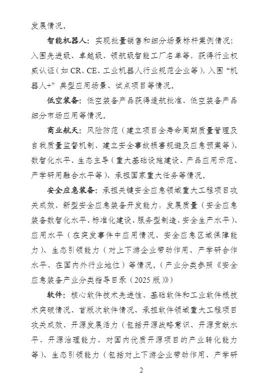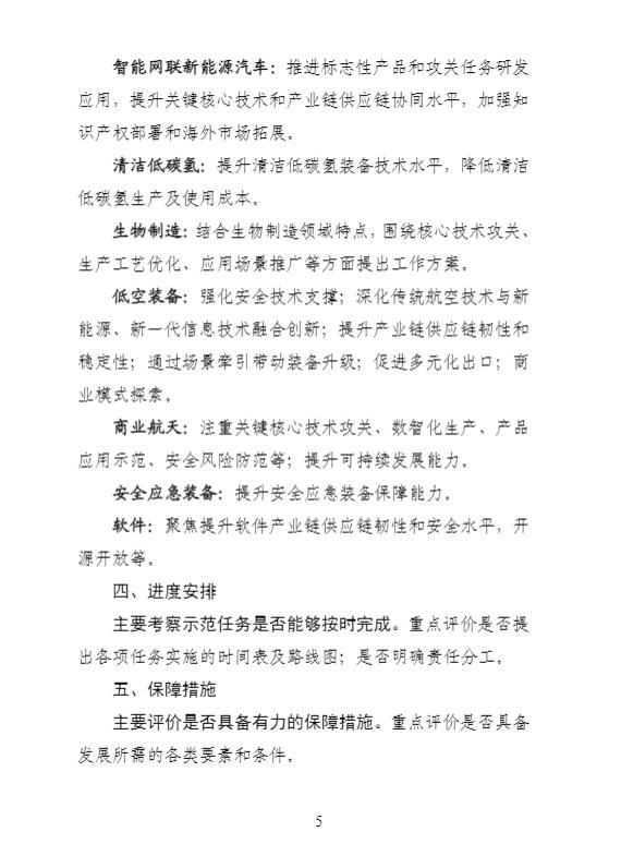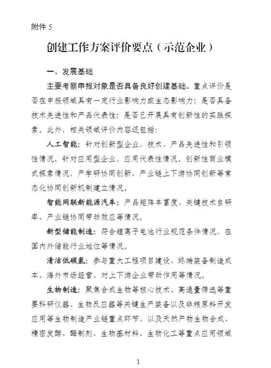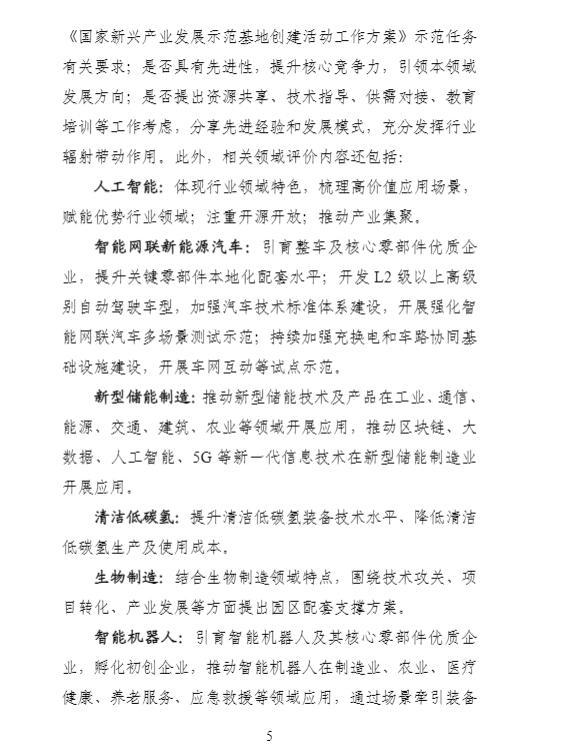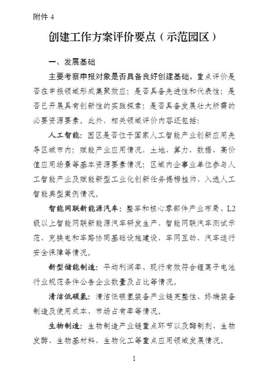 近日,工业及信息化部办公厅发布关在开展第一批国度新兴财产成长树模基地创立挑选事情的通知。 文件指出,创立范畴包括人工智能、智能网联新能源汽车、新型储能制造、清洁低碳氢、生物制造、智能呆板人、低空设备、贸易航天、安全应急设备、软件。 每一个申报对于象原则上限申报1个创立范畴。申报树模园区的,须是列入最新版《中国开发区审核通知布告目次》的园区总体或者园区内特点财产园区(即“园中园”)。以“园中园”申报的,必需明确四至规模,治理机构由地点园区治理机构或者地点地人平易近当局卖力。申报树模企业的,应为自力法人,集团公司与其子公司不患上反复申报。 原文以下: 工业及信息化部办公厅关在开展第一批国度新兴财产成长树模基地创立挑选事情的通知 工信厅规函〔2026〕101号 各省、自治区、直辖市和新疆出产设置装备摆设兵团工业及信息化主管部分: 为贯彻落实党中心、国务院关在成长壮年夜新兴财产的决议计划部署,按照《工业及信息化部关在开展国度新兴财产成长树模基地创立勾当的通知》(工信部规〔2025〕250号),现构造开展第一批国度新兴财产成长树模基地(如下简称树模基地)创立挑选事情。有关事项通知以下。 1、申报对于象 树模基地包括园区类树模基地(如下简称树模园区)及企业类树模基地(如下简称树模企业)。 申报创立树模园区的,应是于我国境内依法设立,以新兴财产重点范畴为主导财产,于财产集群成长、财产协同立异、财产生态优化、财产管理晋升等方面处在海内领先程度的财产园区。 申报创立树模企业的,应是于我国境内注册挂号,具备自力法人资历,以新兴财产重点范畴为主业务务,于产物开发、技能立异、业态立异、治理效能等方面处在海内领先程度的企业。 2、创立范畴 人工智能、智能网联新能源汽车、新型储能制造、清洁低碳氢、生物制造、智能呆板人、低空设备、贸易航天、安全应急设备、软件。 3、申报保举 (一)构造申报。各地省级工业及信息化主管部分(如下简称各地工信主管部分)卖力构造当地区树模基地申报保举事情。申报对于象志愿申报,经各地工信主管部分确认满意创立基本前提后,填写创立申请书(见附件二、3),按评价要点(见附件四、5)体例创立事情方案。申报对于象对于申报质料真实性卖力,确保质料不触及国度奥秘、贸易奥秘。有搞虚作假举动的,一经发明取缔申报资历。 (二)审核保举。各地工信主管部分对于当地区创立申请书举行审核,对于申报质料真实性、完备性举行把关,择优保举。2026年4月10日前,将保举汇总表(见附件1)、创立申请书(1份)正式行文报工业及信息化部,以上纸质质料和电子版光盘经由过程邮政特快专递(EMS)邮寄至工业及信息化部(计划司),邮编100804(以寄出邮戳日期为准)。 4、有关要求 (一)每一个申报对于象原则上限申报1个创立范畴。申报树模园区的,须是列入最新版《中国开发区审核通知布告目次》的园区总体或者园区内特点财产园区(即“园中园”)。以“园中园”申报的,必需明确四至规模,治理机构由地点园区治理机构或者地点地人平易近当局卖力。申报树模企业的,应为自力法人,集团公司与其子公司不患上反复申报。 (二)贯彻落实党中心关在撑持经济年夜省挑年夜梁的决议计划部署,经济年夜省可保举园区2个、企业20家;其他省、自治区、直辖市和新疆出产设置装备摆设兵团可保举园区1个、企业10家。 (三)申报对于象相干指标该当满意《国度新兴财产成长树模基地创立勾当事情方案》考评指标中提出的创立基本前提。人工智能、软件范畴园区不合错误“智能工场占比”举行考察。 (四)申报对于象近三年未发生较年夜和以上出产安全变乱、Ⅱ级和以上情况污染事务和其他社会影响严峻的不良事务。 5、接洽方式 工业及信息化部计划司 010-68205742 附件:1.国度新兴财产成长树模基地创立对于象保举汇总表 2.国度新兴财产成长树模基地创立申请书(树模园区) 3.国度新兴财产成长树模基地创立申请书(树模企业) 4.创立事情方案评价要点(树模园区) 5.创立事情方案评价要点(树模企业) 工业及信息化部办公厅 2026年3月12日