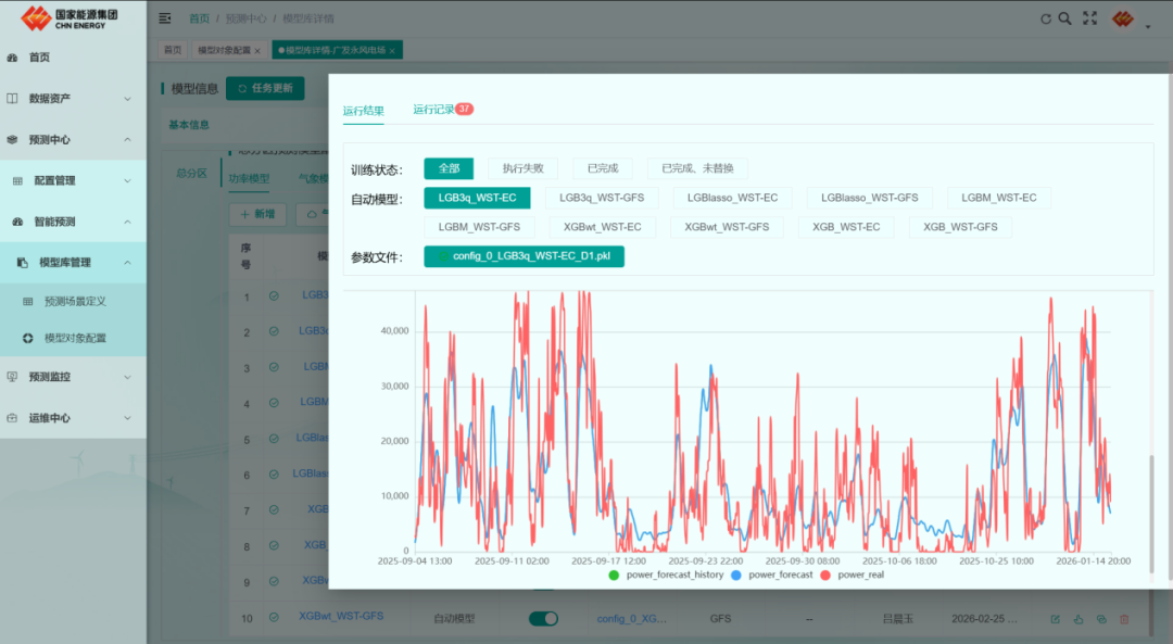 近日 龙源电力自立研发的 新能源功率猜测模子平台 正式上线运行 该平台依托成熟完美的多模子 猜测技能与尺度化系统 实现多景象形象数据源与多猜测模子的 N*N快速组合测试与迭代优化 年夜幅晋升技能研发与 推广运用效率 为功率猜测新技能 范围化运用筑牢根底 图为模子平台首页 跟着新能源周全入市 和并网消纳相干政策的深切实行电网调理与电力市场对于 功率猜测的要求愈来愈高正确率、时效性、不变性缺一不成 猜测模子 恰是决议精度的“要害钥匙” 龙源电力充实阐扬 自立研发与技能办事上风 立异构建起“数据—练习—猜测”一体化算法系统笼罩功率猜测全流程实现高效数据治理+智能模子练习+精准猜测数据推送 图为平台模子练习页面 该平台搭载全方位主动练习模块 可高频次完成模子自进修与迭代更新 连续连结模子的进修活气与猜测适配性 不停晋升功率猜测精度 同时 平台实现云端猜测指标 全天候及时监控 异样时主动触发预警机制为猜测营业不变运行保驾护航 截至今朝 该平台已经于450余个新能源场站落地运用 实现营业全流程线上化、尺度化治理单个场站模子上线效率晋升50% 下一步 龙源电力将连续优化平台功效 鞭策其从营业支撑东西 向技能迭代中枢改变 聚焦极度气候应答、电力市场生意业务 等多元场景加快定制化猜测模子研发为新能源电力体系高质量成长 注入更强动能