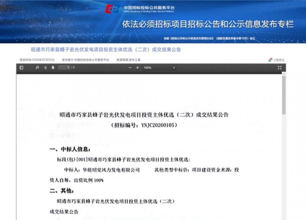 春启新程,实干抢先。近日,云南省昭通市能源局委托的竞争性商量构造单元于中国招标投标大众办事平台发布《昭通市巧家县蜂子岩光伏发电项目投资主体优选(二次)成交成果通知布告》,华能新能源四川分公司脱颖而出、顺遂中选。该项目的取患上不仅为四川分公司跨区域开发再添新邦畿,更为四川分公司2026年和“十五五”的高质量成长起步开了好头。 四川分公司始终锚定集团公司和新能源公司成长战略,自动抢抓能源转型要害机缘,以高效务实的步履落实战略部署,充实彰显了践行绿色成长、办事国度能源年夜局的责任担任。 下一步,四川分公司将始终连结高昂向上的奋斗姿态,树立及践行准确政绩不雅,传承攻坚克难的劲头、雕琢前行的韧劲,进一步凝结全员协力,竭尽全力冲刺年度各项方针使命,以实干实绩为新能源公司“十五五”成长战略的圆满告竣孝敬气力!